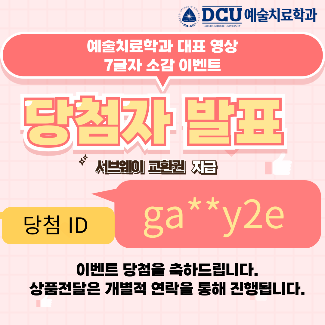 예술치료학과 대표 영상 시청 후 진행된 7글자 소감 댓글 이벤트에 참여해주신 모든 분들께 진심으로 감사드립니다.