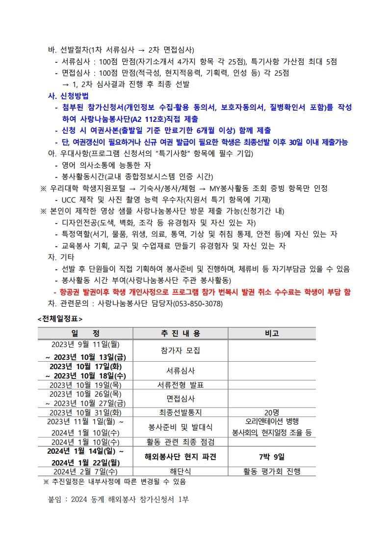 2023 동계 해외봉사 참가신청서(신청서, 자기소개서, 개인정보수집이용동의서, 보호자동의서, 질병확인서) (2).hwp