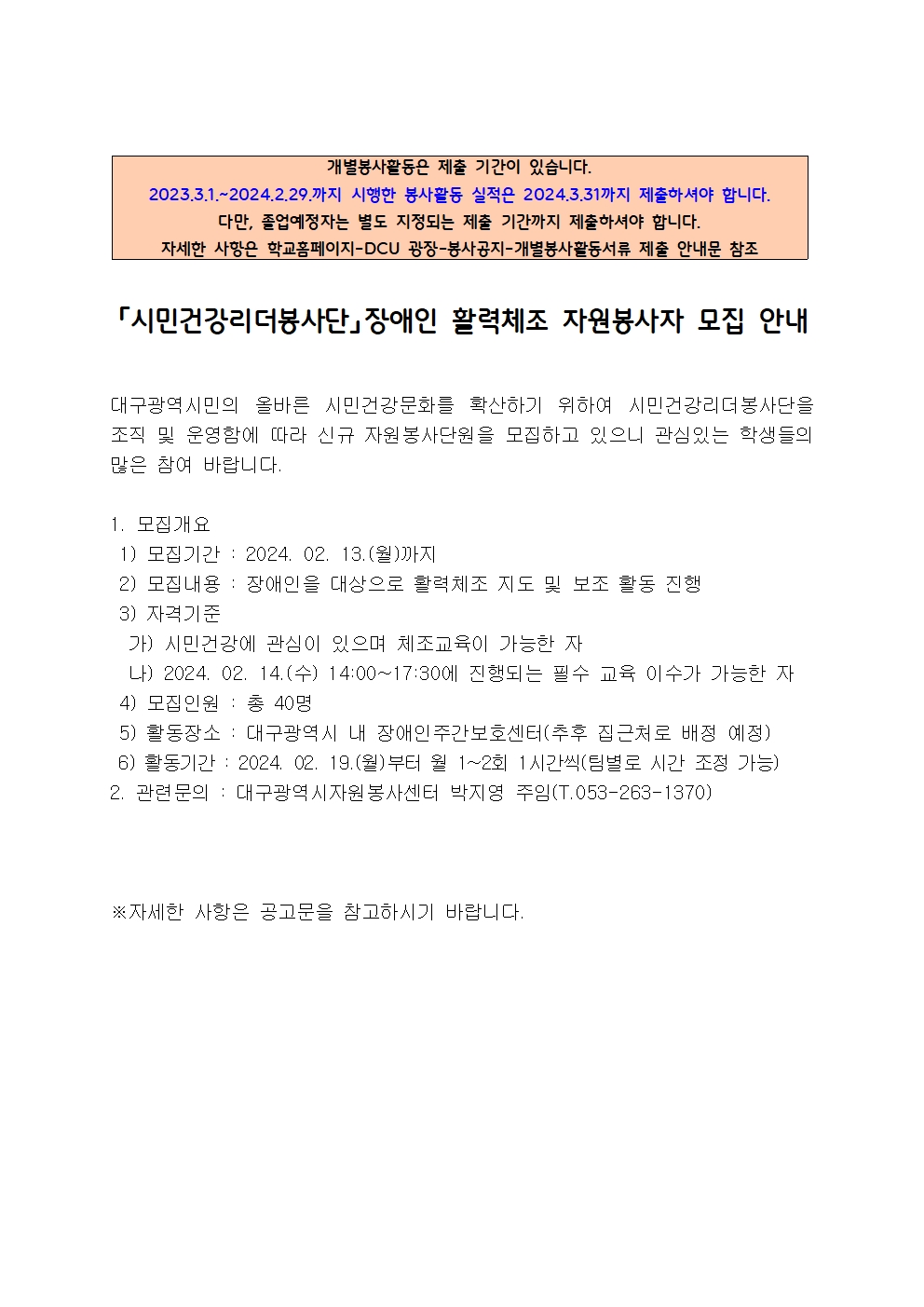 자원봉사모집 안내문(양식) - 시민건강리더봉사단.hwp