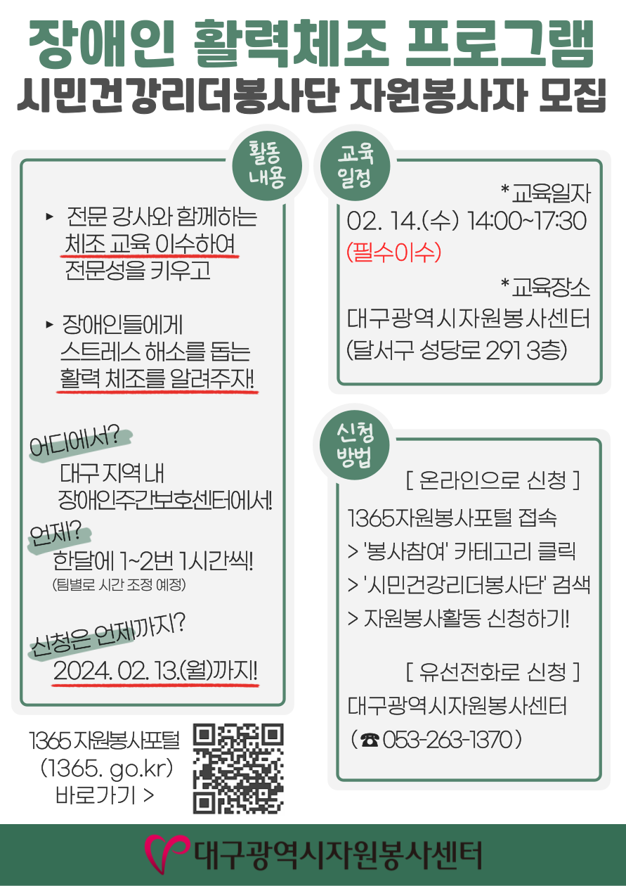 (붙임)시민건강리더봉사단 장애인 활력체조 자원봉사자 모집 홍보 포스터.png