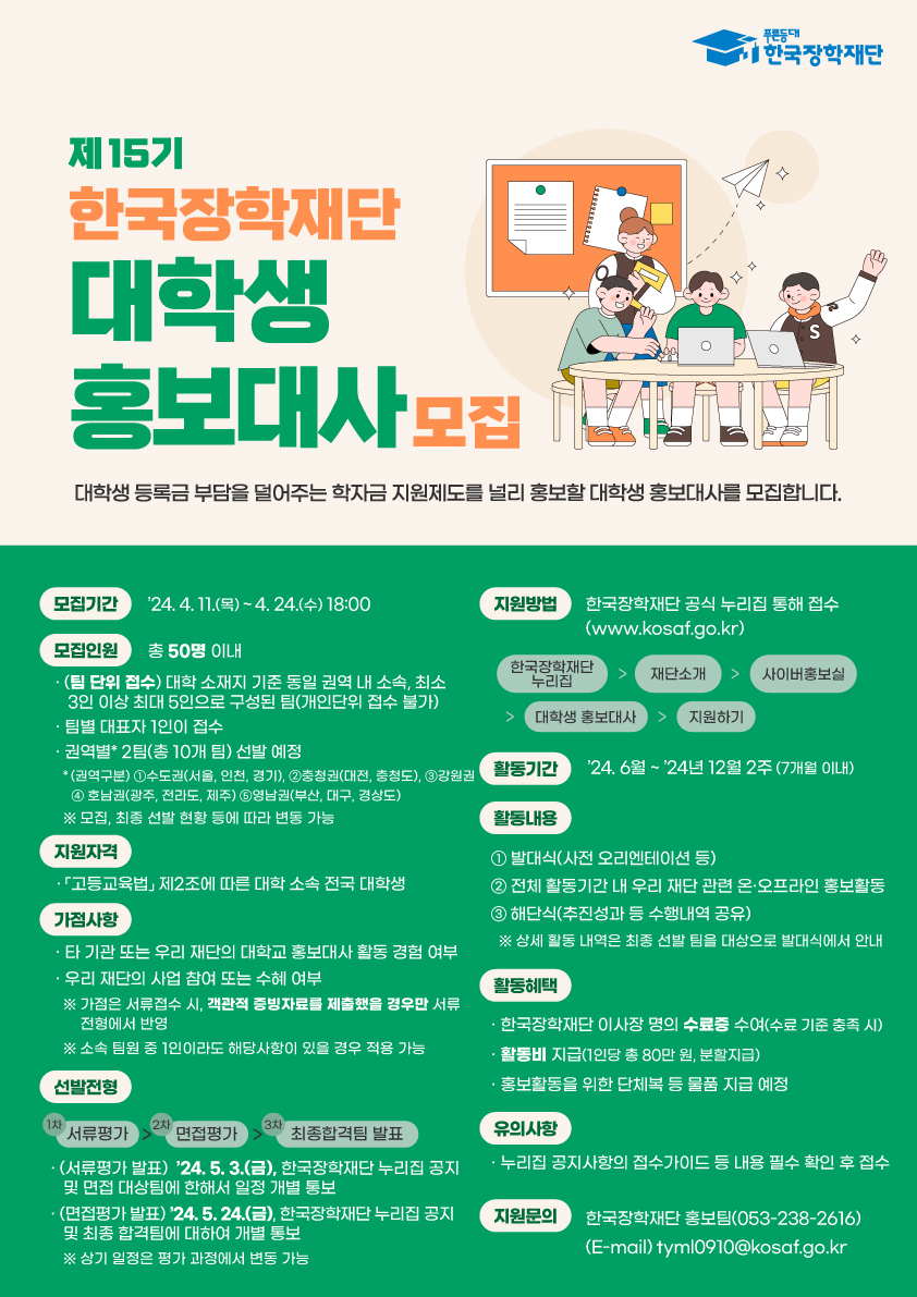 제 15기 한국장학재단 대학생 홍보대사 모집