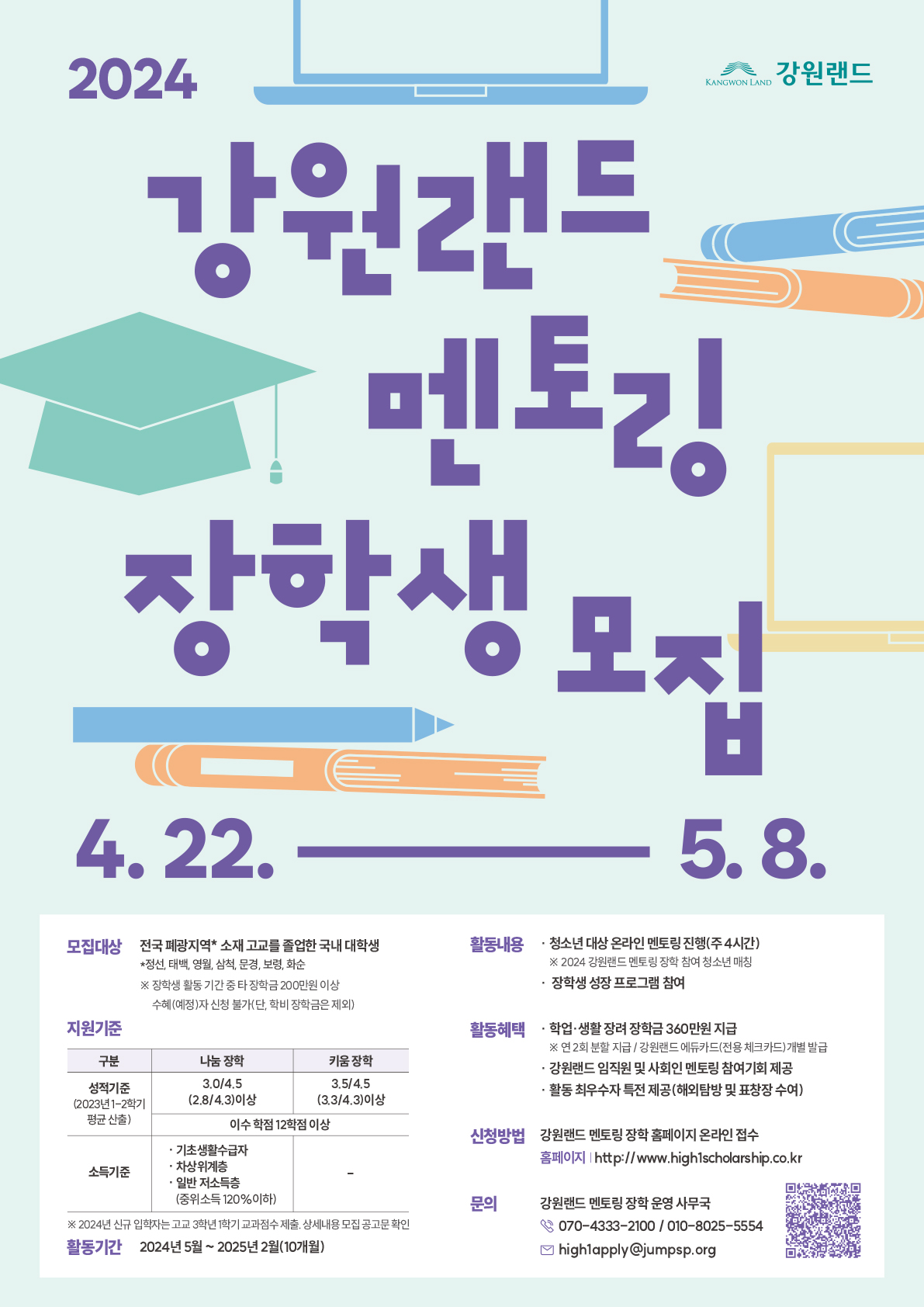 2024 강원랜드 멘토링 장학생 모집 포스터(대학생).jpg