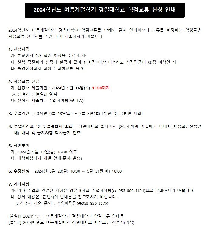 (공지)2024학년도 여름계절학기 영남대학교 학점교류 신청 안내.png