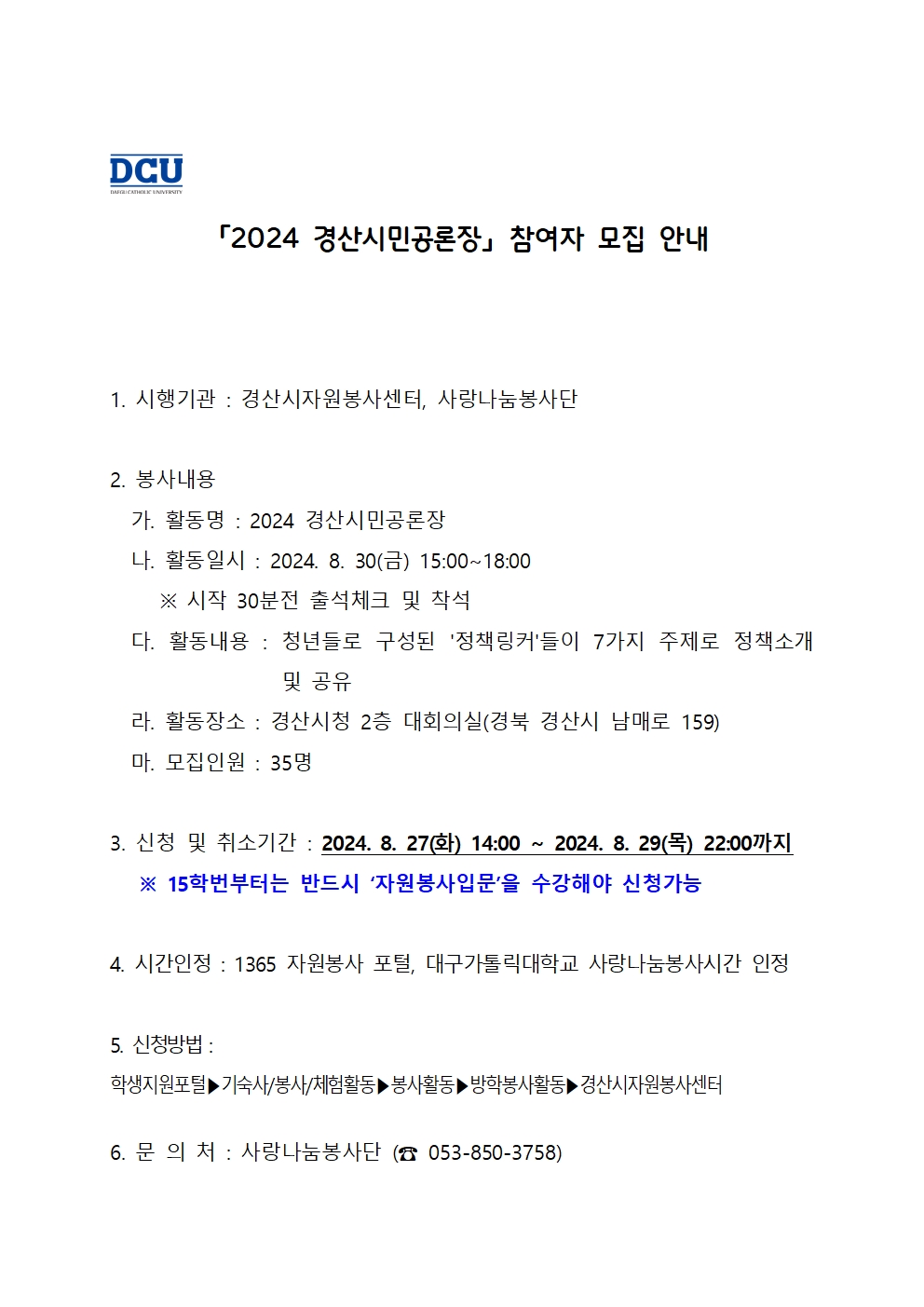 [사랑나눔봉사단주관봉사]2024 경산시민공론장 참여자 모집 안내