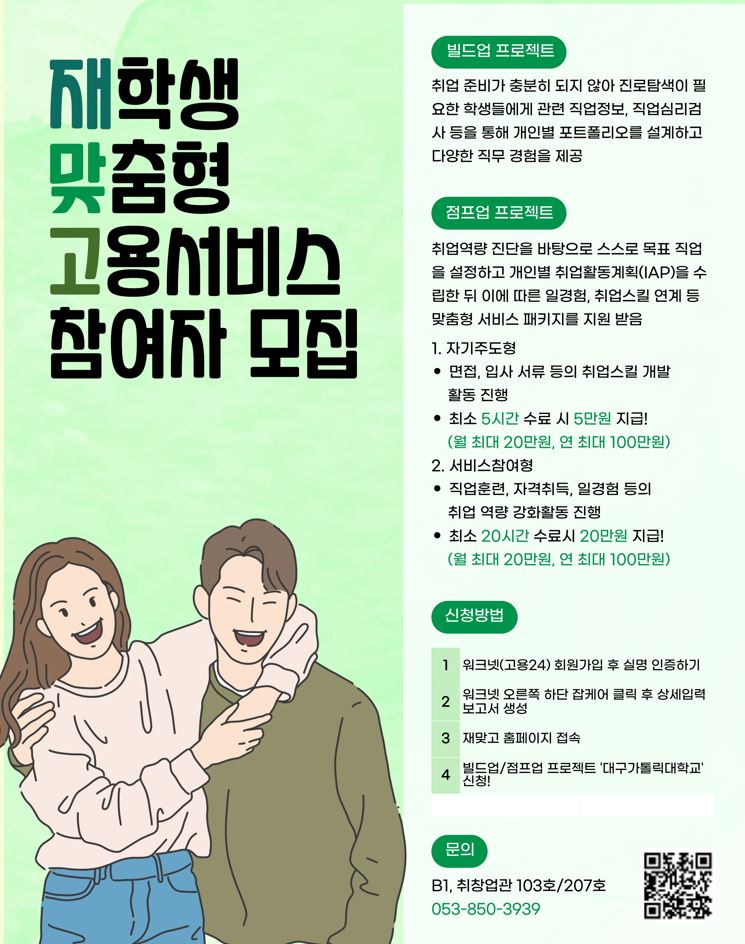 자세한 신청방법은 첨부파일 [재학생맞춤형고용서비스 신청방법 안내] 참고해 주세요