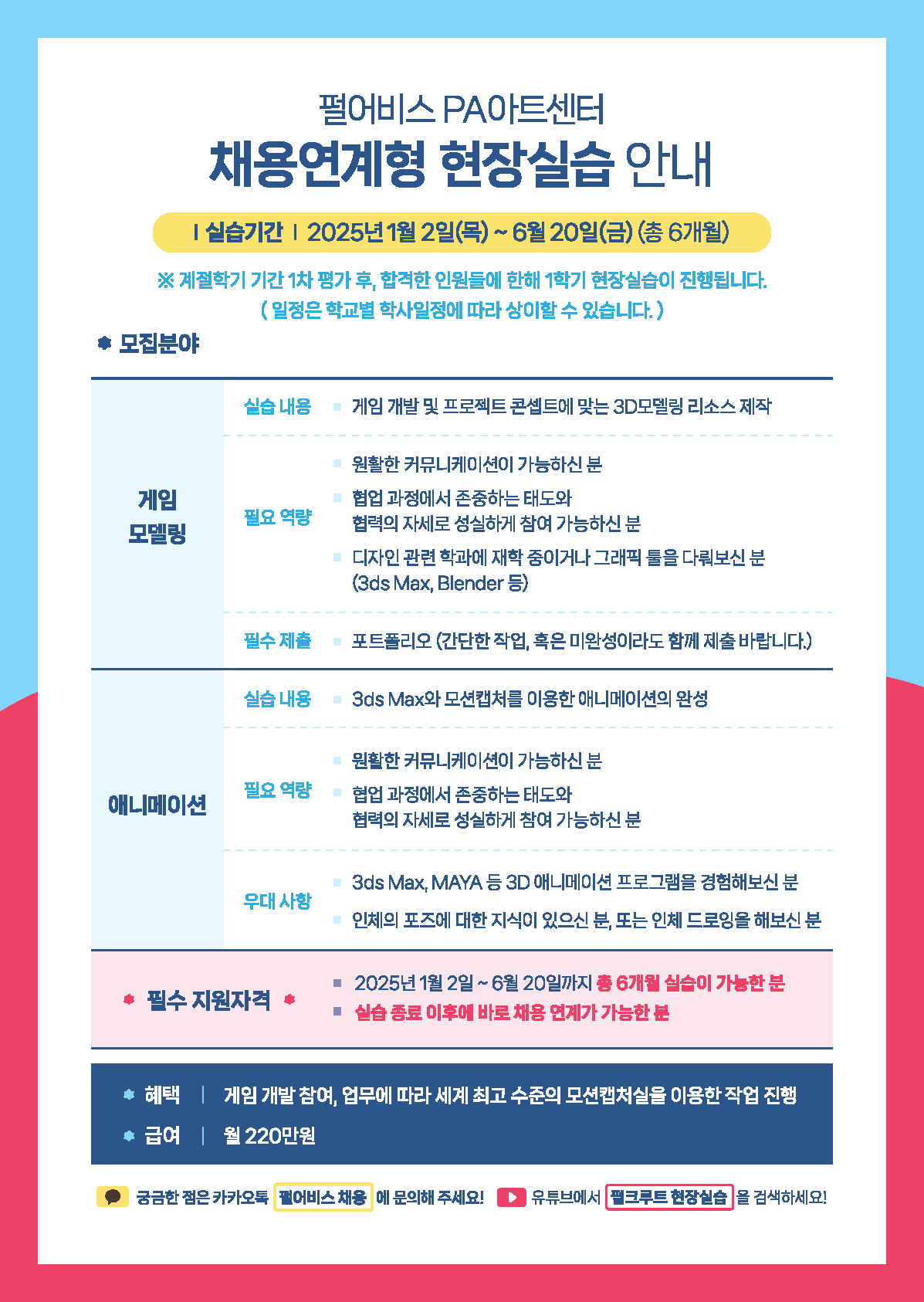 - 펄어비스&PA아트센터 현장실습 설명회 영상 : https://youtu.be/7hn9DOqtfig?si=SBoopOvTF4v62WV2