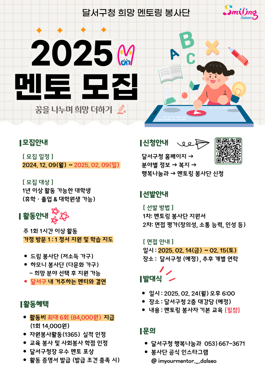 2025년 달서구 멘토링봉사단 멘토 모집 홍보안내지.png