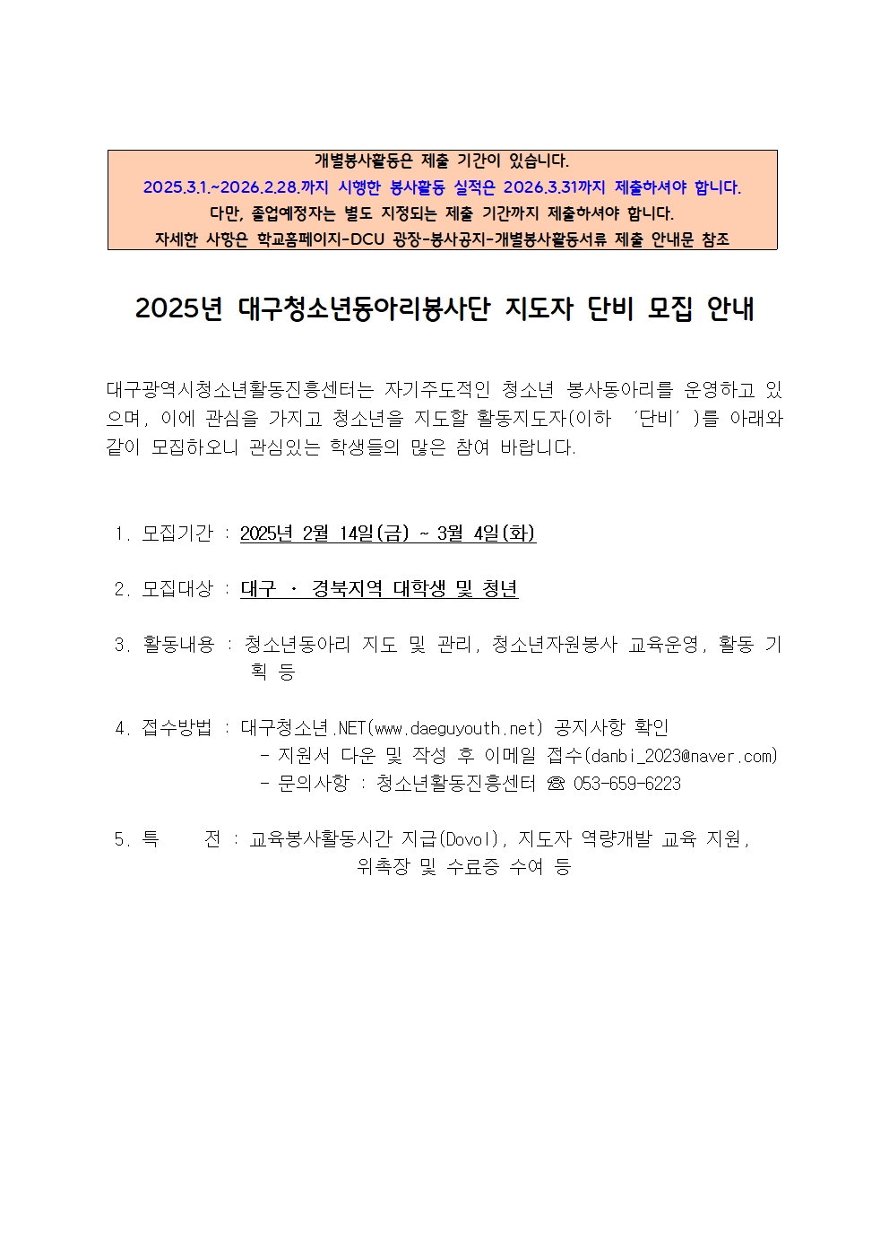 [붙임] 2025년 대구청소년동아리봉사단 활동지도자 지원 서류 (1).hwp