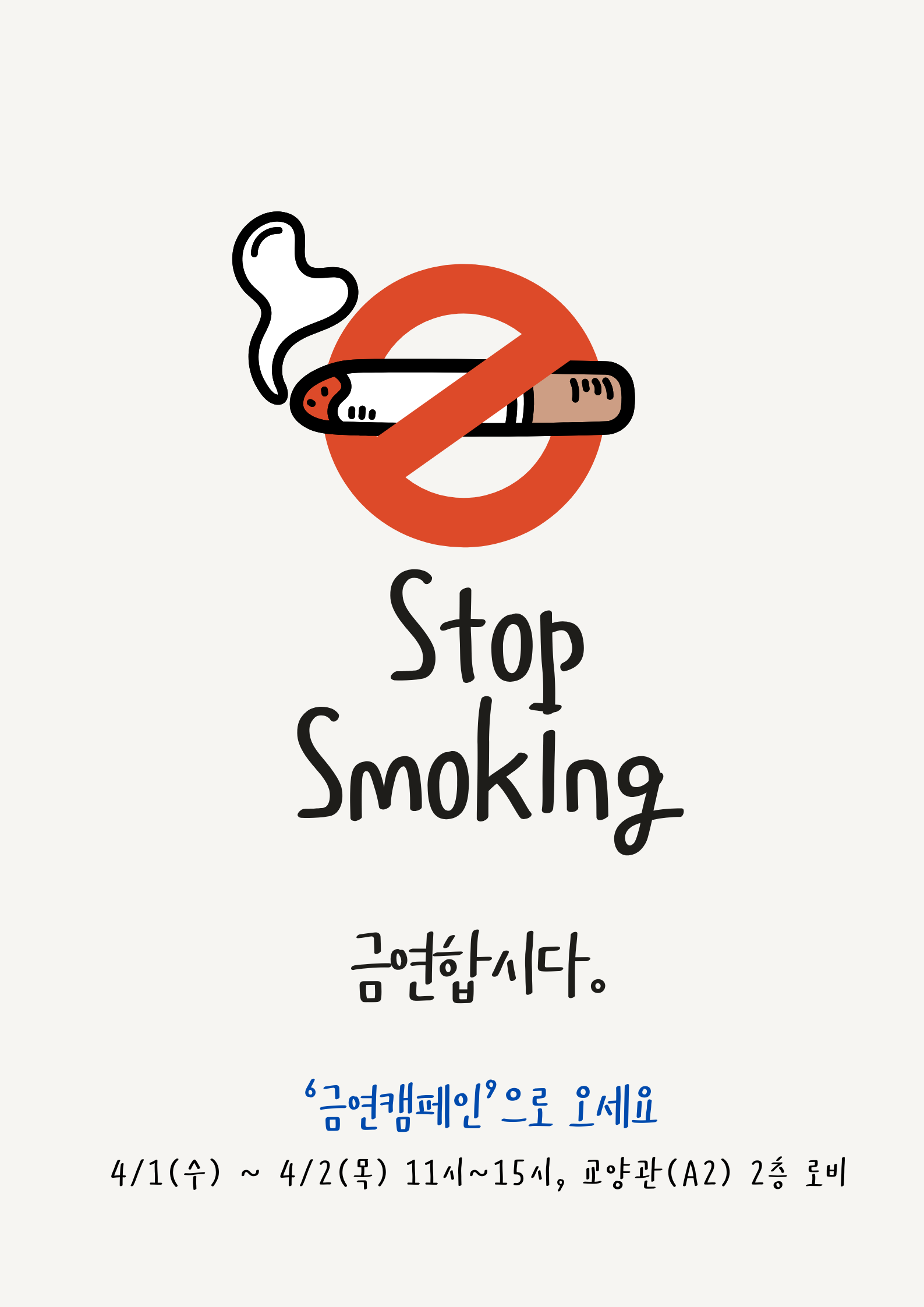 금연캠페인 및 금연상담을 실시하오니 많은 참여 부탁드립니다.