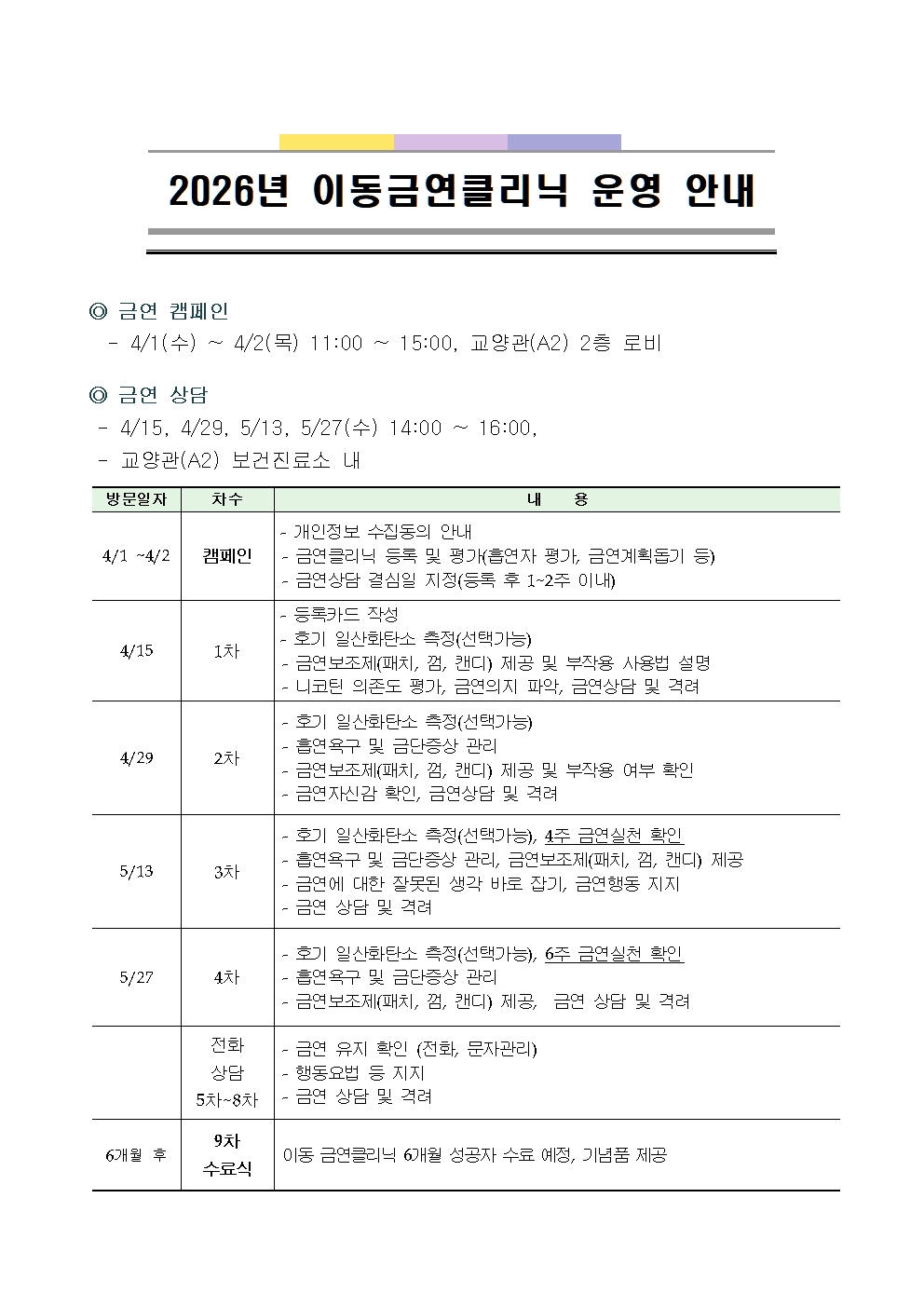 3) 내용 : 개인별 맞춤형 금연상담, 금연 보조제 및 행동요법제 제공 등