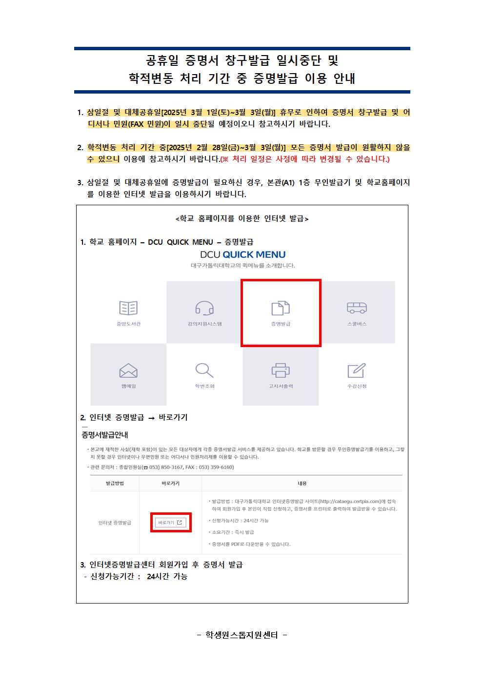 공휴일 증명서 창구발급 일시중단 및 학적변동 처리 기간 중 증명발급 이용 안내 (1).jpg