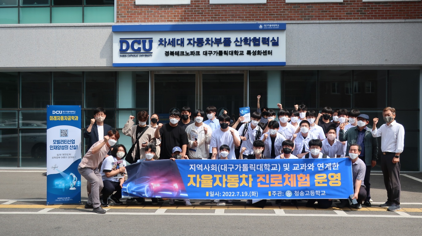2022년 7월 19일 대구가톨릭대학교에서 미래자동차공학과 주최로 진행된 자율주행 자동차 전공 체험을 함께 했던 학생들 모두에게 감사의 마음을 전합니다. 너무 열심히 참여해주어서 저희도 즐길 수 있는 좋은 시간이었습니다.