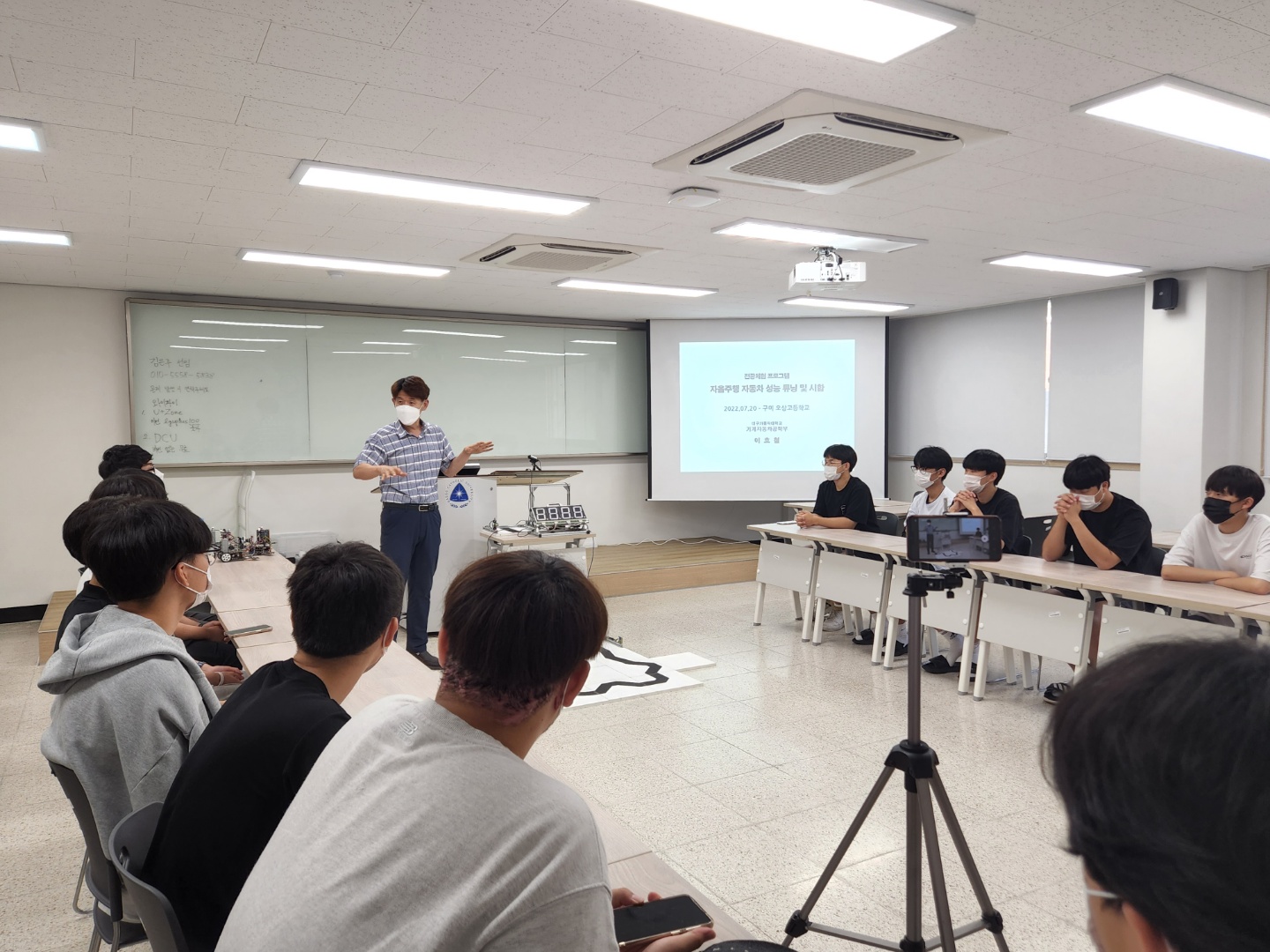 2022년 7월 20일 대구가톨릭대학교에서 미래자동차공학과 주최로 진행된 자율주행 자동차 전공 체험을 함께 했던 학생들 모두에게 감사의 마음을 전합니다. 너무 열심히 참여해주어서 저희도 즐길 수 있는 좋은 시간이었습니다.