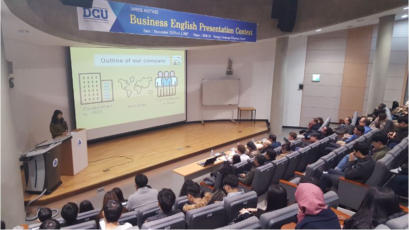 2017학년도 2학기 비즈니스 영어 인증 프로그램 관련 교과목 수강생을 대상으로 한 '비즈니스 영어 프레젠테이션 컨테스트'가 11월 23일(목) 오후 1시에 취창업관 208호에서 진행됐습니다. 관련 교과목 전체 수강생 847명 중 1차 및 2차 심사를 통과한 12명의 학생들이 컨테스트에 참여했습니다. 추후 1등 상금 50만원을 포함, 총 6명을 시상할 예정입니다.