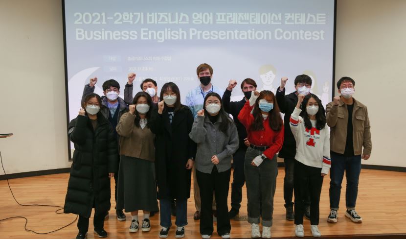 외국어교육센터에서는 11월 23일(화) 오후 1시 취창업관 208호에서 <비즈니스 영어 프레젠테이션 컨테스트>를 진행했습니다. 2021학년도 1학기 '초급 비즈니스 영어의 이해' 교과목을 수강하는 500명의 학생들이 각자의 3분 영어 발표 동영상을 제작해 1차, 2차 심사를 진행했고, 최종 선발된 10명의 학생들이 컨테스트에 참여했습니다.