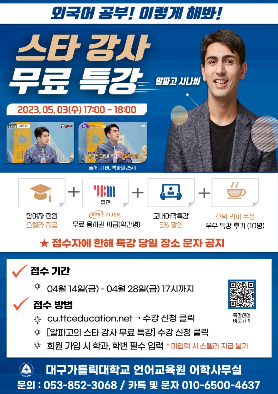 방송인 "알파고" 스타 강사 무료 특강 신청 안내 [비교과]