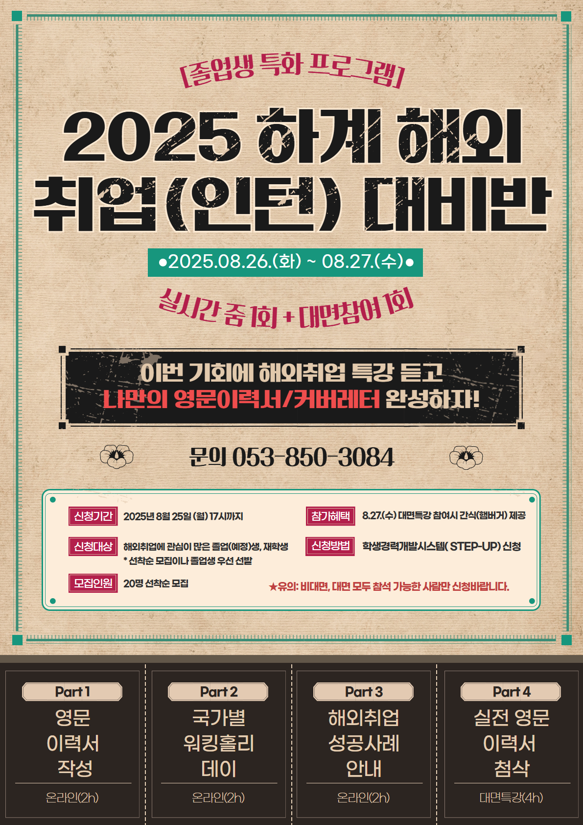가. 프로그램: 2025학년도 하계방학 해외취업(인턴) 대비반