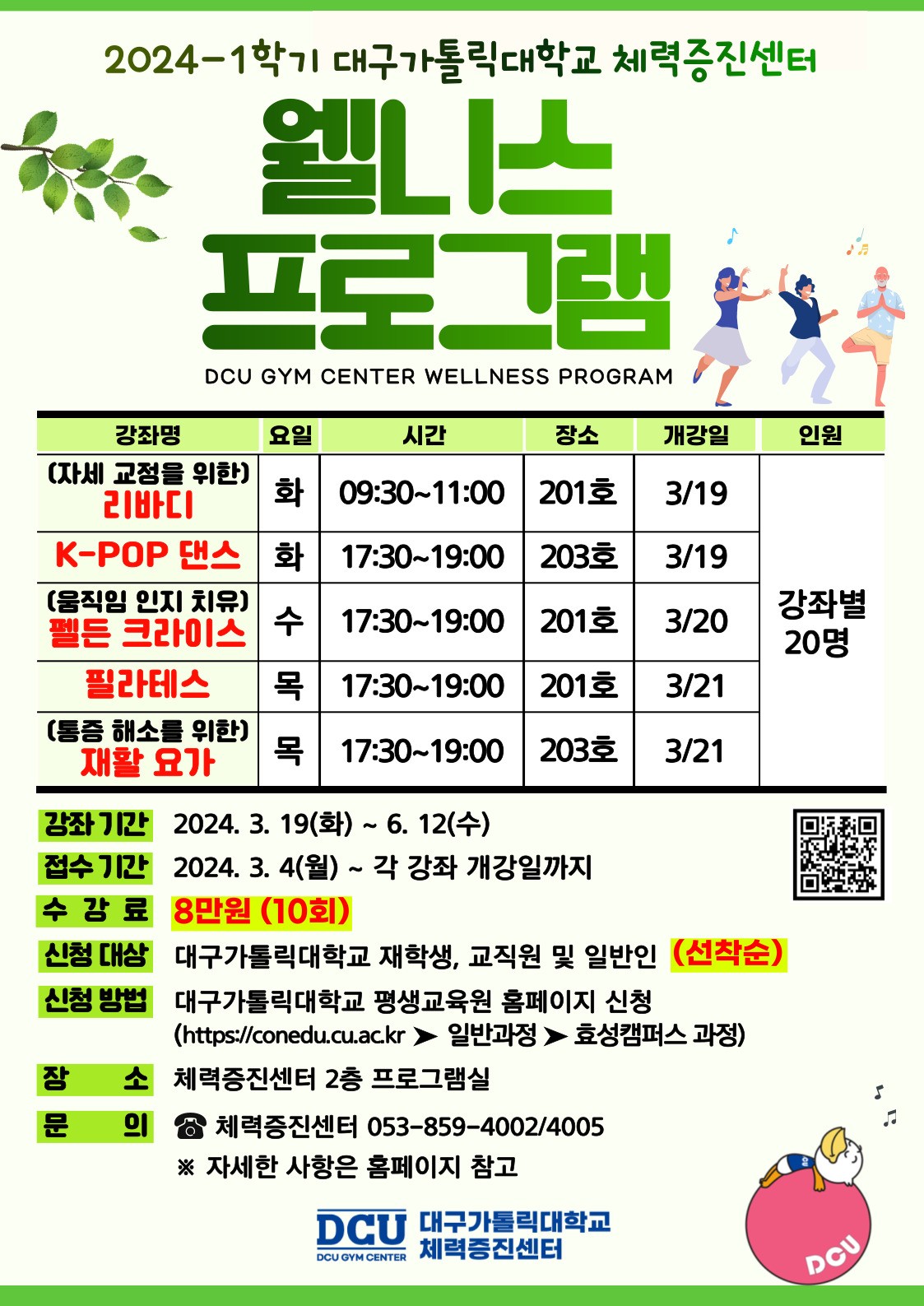 체력증진센터 2024-1학기 『웰니스 프로그램』 개설 안내