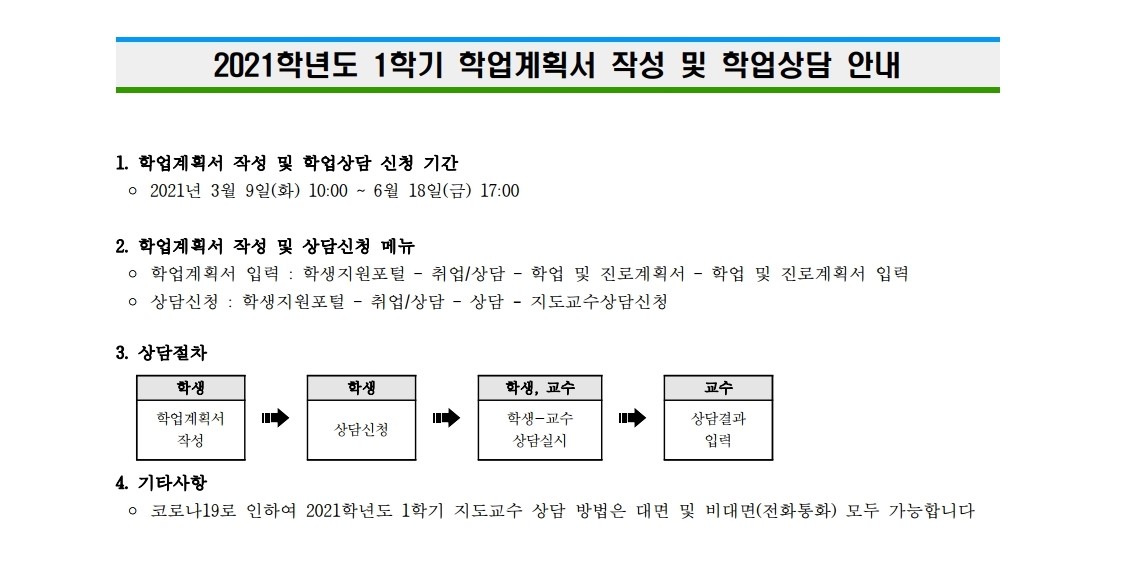 2021학년도 1학기 학업계획서 작성 및 학업상담 안내