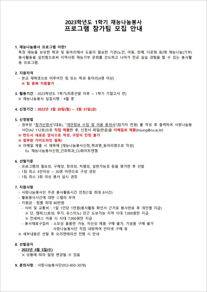 2023-1학기 재능나눔봉사 모집공고문.hwp