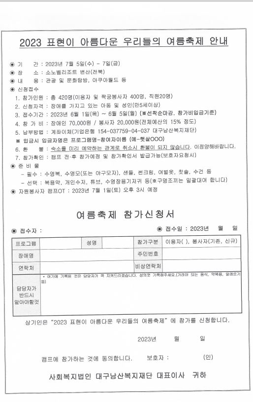 2023 표현이 아름다운 우리들의 여름축제 자원봉사 모집