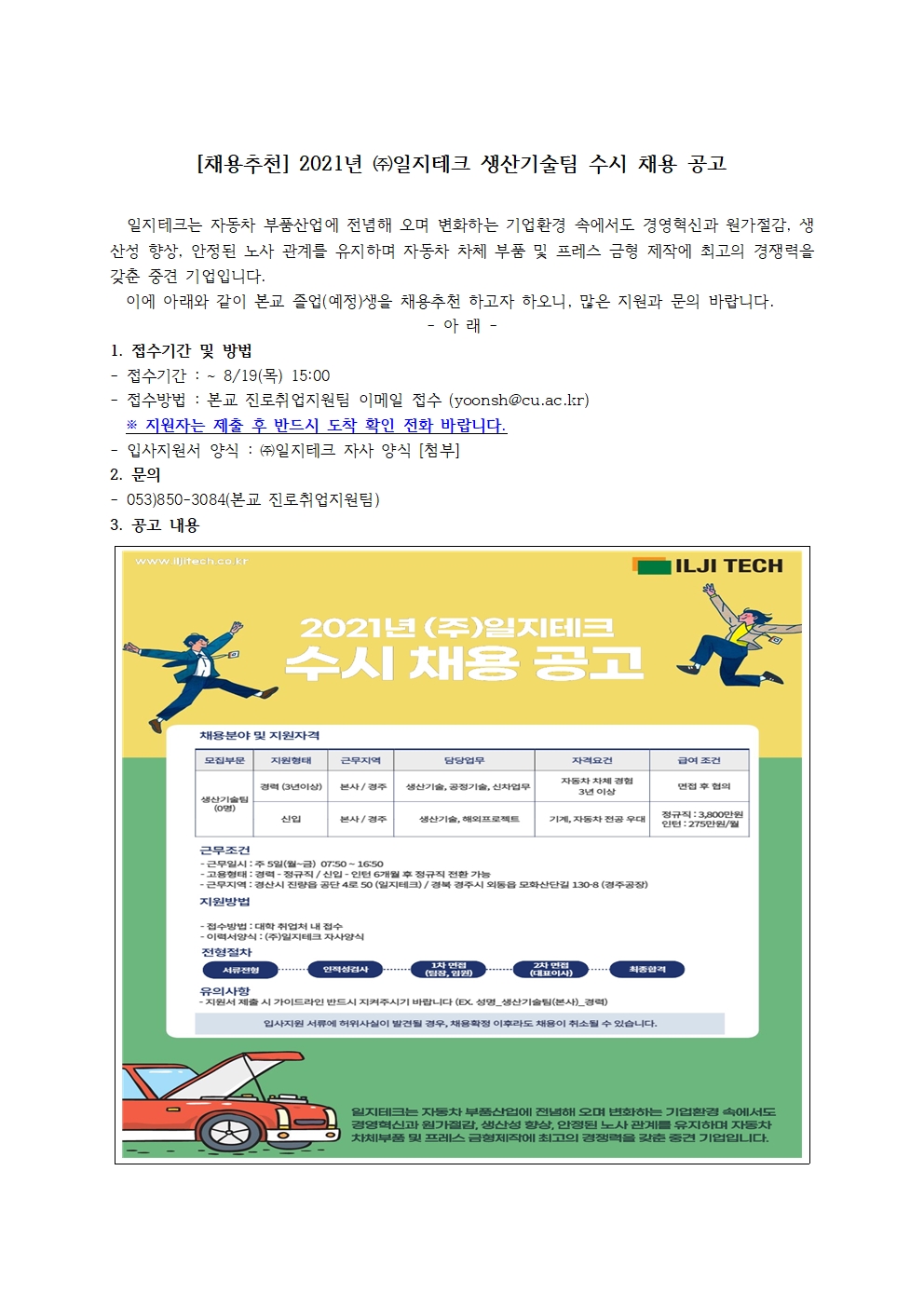 일지테크는 자동차 부품산업에 전념해 오며 변화하는 기업환경 속에서도 경영혁신과 원가절감, 생산성 향상, 안정된 노사 관계를 유지하며 자동차 차체 부품 빛 프레스 금형 제작에 최고의 경쟁력을 갖춘 중견 기업입니다.