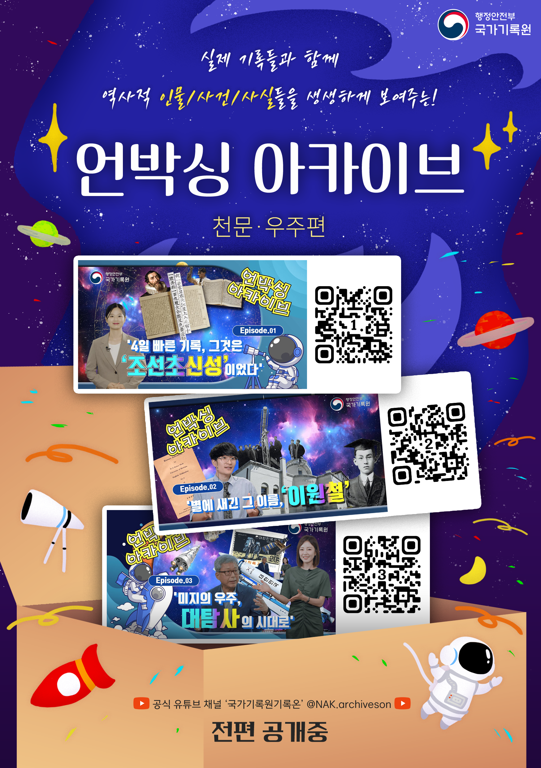 * 유튜브(Youtube.com)에서 "국가기록원 언박싱 아카이브" 검색하여 시청 가능