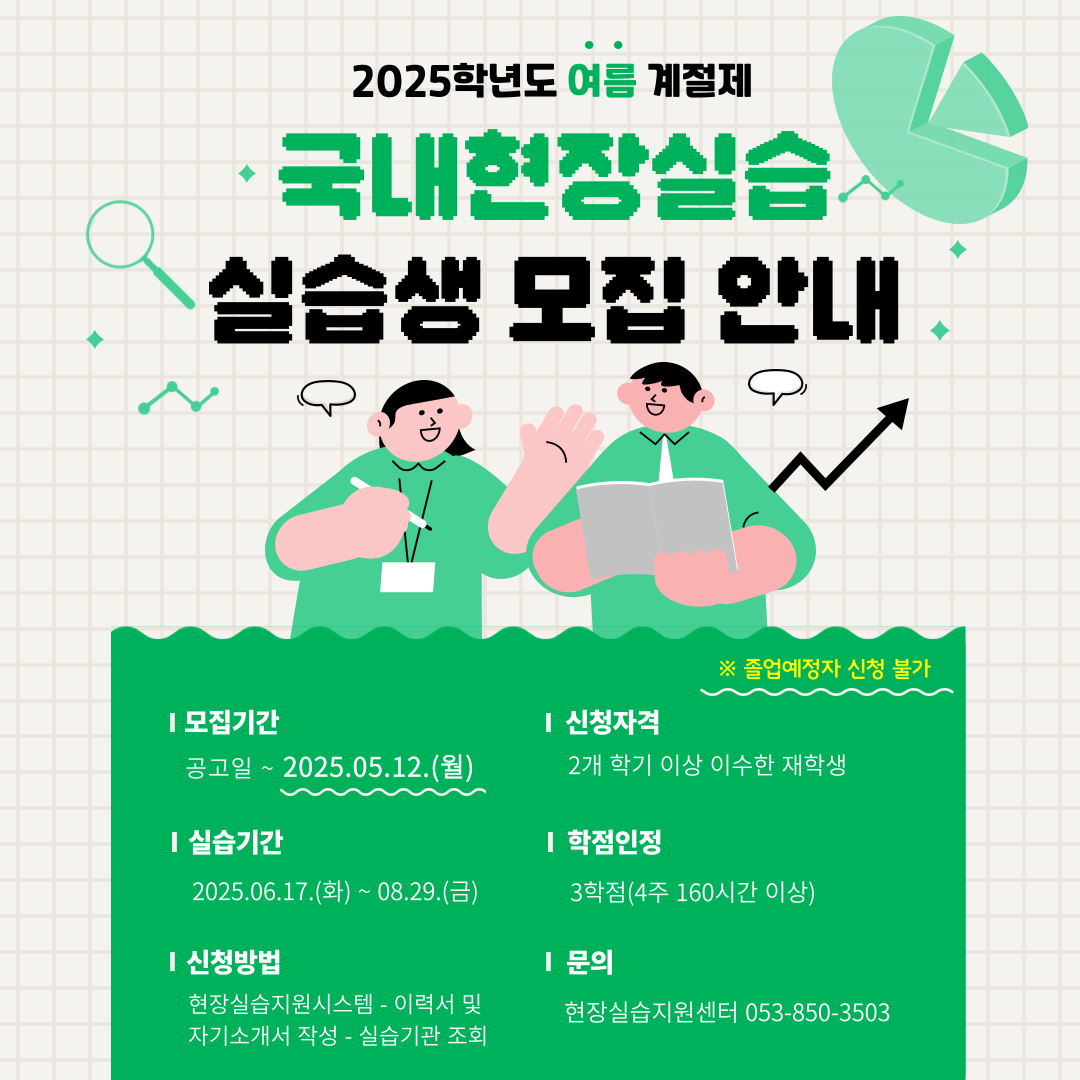 2. 2025학년도 여름 계절제 국내현장실습생 모집 포스터 1부.