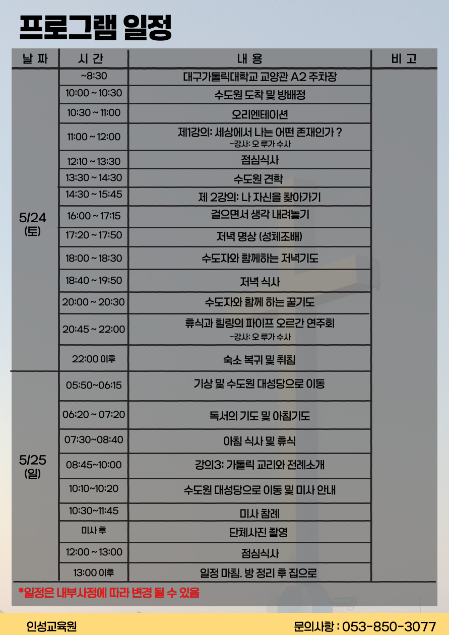 ※ 천재지변 등으로 일정이 변경 또는 취소될 수 있음