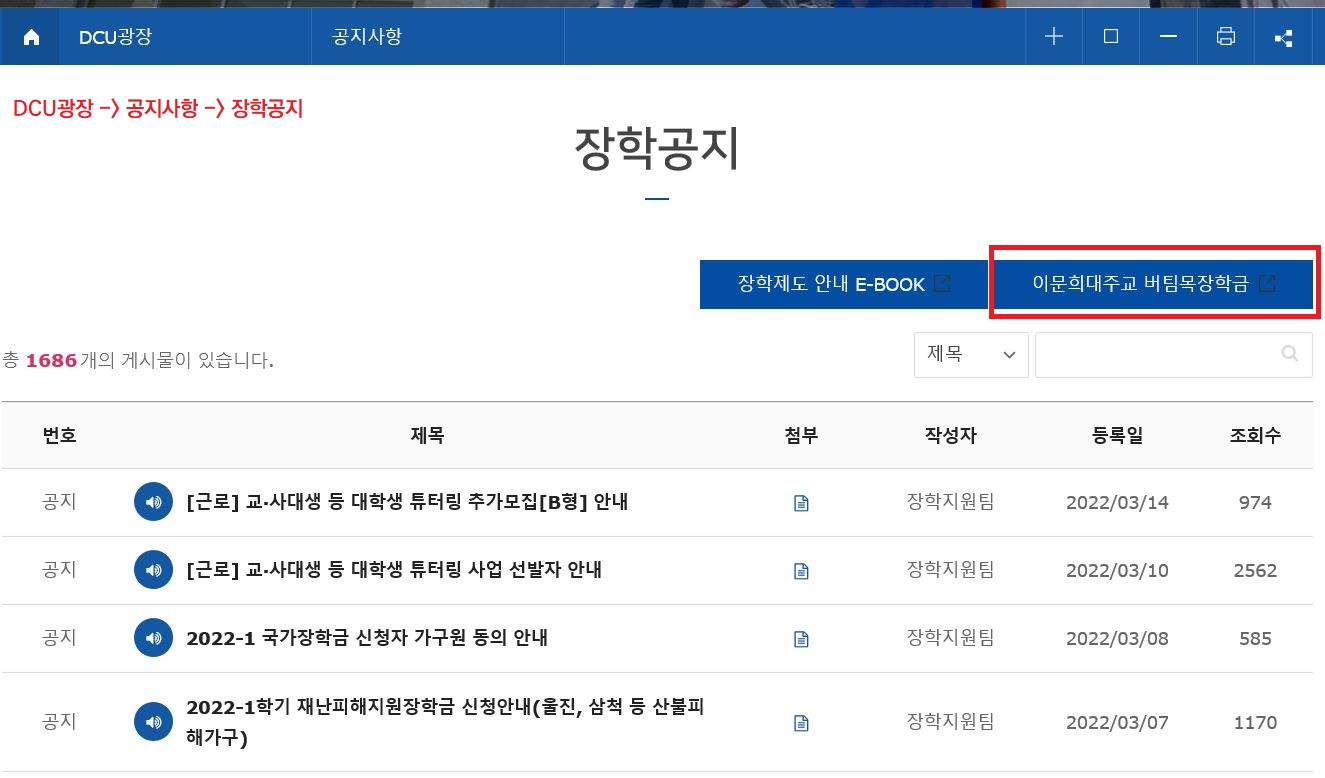 바. 신청방법 : 본교 홈페이지→ DCU광장→공지사항→장학공지