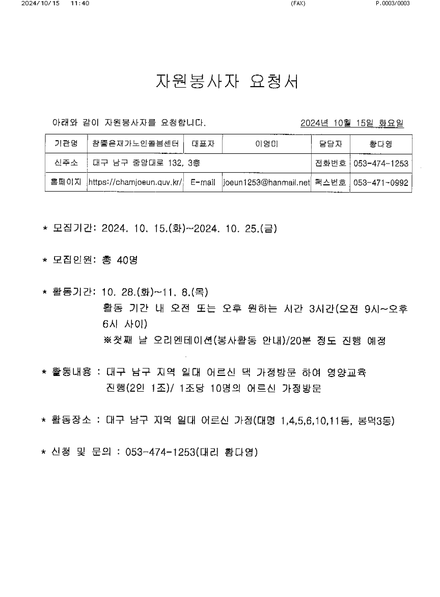 문의 : 참좋은재가노인돌봄센터(053-474-1253)