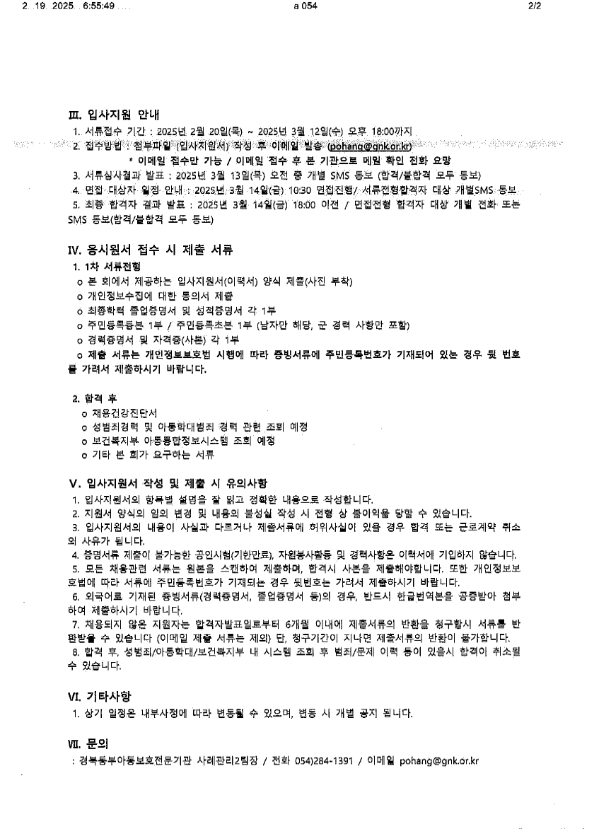 나. 근무지 : 경북동부아동보호전문기관(포항시 남구 대이로 25번길 12, 3층)