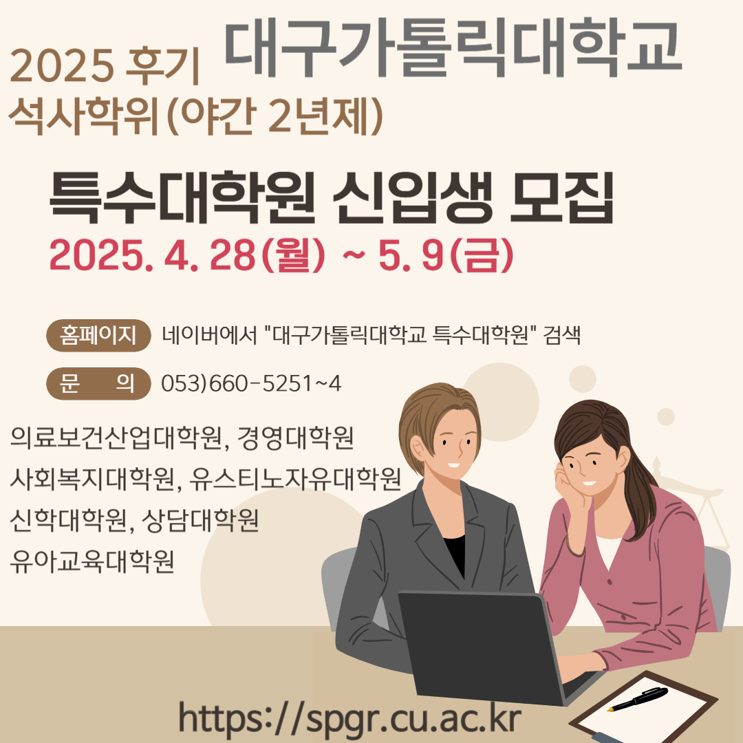 대구가톨릭대학교 2025학년도 후기 특수대학원 신입생 모집 안내
