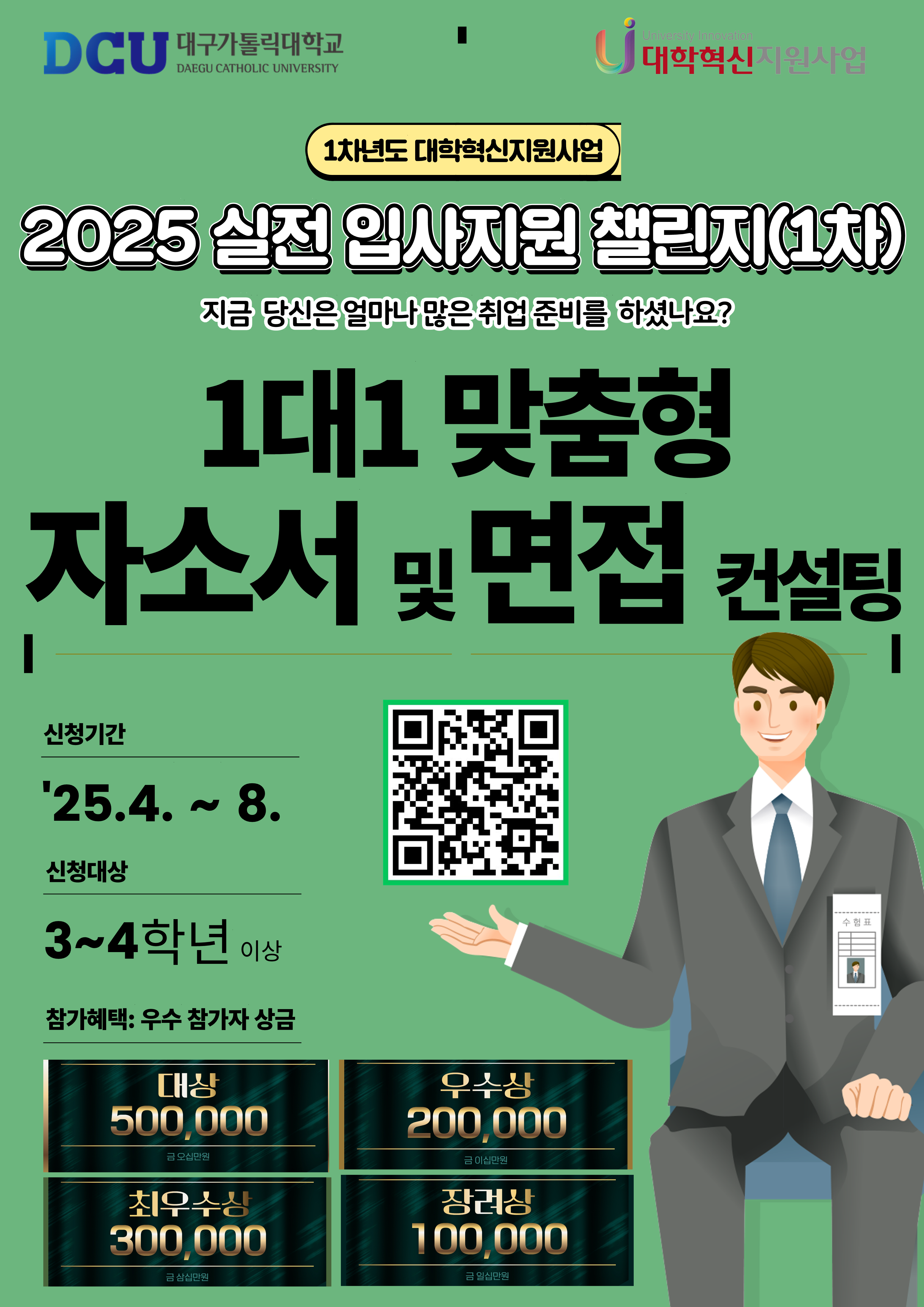 1) 대 상(1명): 상금 500,000원 수여(계열 통합 시상)