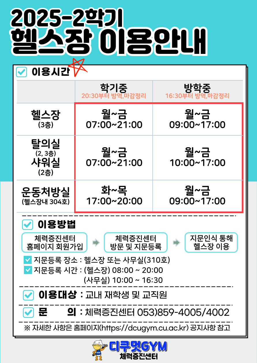5. 문의 : 체력증진센터 ☎ 053-859-4005/4002